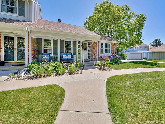 Style and sophistication abound at 2648 E Fremont Place, a stunningly renovated end unit ranch townhome in the heart of Village at the Knolls! This charming west-facing home boasts a serene covered front porch set behind vibrant perennials, creating a tranquil setting for morning coffee or afternoon lemonade. Step inside to discover a bright and airy living space cloaked in natural light from many windows. The family room is perfect for cozy evenings by the woodburning fireplace, tastefully updated in shades of white and gray. The home features a beautifully renovated kitchen sure to delight the most discerning chef, complete with stainless steel appliances, a marble tile backsplash, a Bosch European convection oven and range, and a convenient pantry. Host a meal in the dining room featuring a modern light fixture and tasteful accent wallpaper. The primary bedroom is a true retreat, featuring luxury vinyl plank flooring and a charming bay window that cloaks the room in natural light. The renovated primary bath is a showstopper with custom tile work, creating a spa-like atmosphere. Enjoy the convenience of a second upstairs bedroom complete with updated en suite bath! The finished basement expands your living space with a large rec room, a third bedroom, and a three-quarter bath, ensuring guests and loved ones will feel right at home. A two-car garage provides ample storage and parking, while the community garden offers a space to nurture your green thumb. The Knolls townhomes are conveniently located within walking distance to the Streets of Southglenn, Whole Foods, and Snooze. Enjoy nearby trails and open space at Cherry Knolls Park and Big Dry Creek Trail, perfect for walking, biking, and outdoor activities.