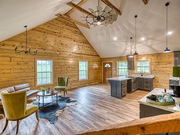 Welcome home to this cozy 2-bedroom, 1.5-bath cottage in Logan County, Kentucky, that was completed in 2024. Situated on flat, open land and surrounded by mature trees on the property’s perimeters it has just the right mix of privacy and open space. This charming home blends rustic appeal with modern convenience, featuring a wood log exterior, metal roof, and inviting covered front and back porches perfect for relaxing or entertaining. Step inside to a warm, open-concept living area where the vaulted ceilings and wood floors create a spacious yet cozy feel. The main level offers a seamless flow between the living room and kitchen, ideal for hosting or quiet nights in. A versatile loft bedroom adds character and extra space for guests, an office, or creative use. Located in the Logan County school district, you're just minutes from Russellville, and only 30 minutes to Franklin or Bowling Green—enjoy the peaceful setting without sacrificing convenience. This property is perfect as a starter home, weekend getaway, or investment opportunity. Don’t miss your chance to own a little piece of country charm!