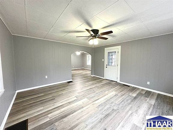 Discover the perfect blend of charm and potential on Hulman with this inviting 2-bedroom home. Your canvas awaits as you step inside, ready to infuse your unique style and personality into every corner. The seamless flow from the living room to the spacious dining area and modernized kitchen sets the stage for comfortable living. Adorned with new laminate floors, the main living spaces exude a contemporary allure, while the bedrooms feature new carpeting for added comfort. Venture to the basement from the well-appointed kitchen, where storage space awaits your organizational touch. Outside, the fenced rear yard provides a private oasis with access to the detached garage. Embrace the opportunity to shape this residence into your ideal haven, where every detail reflects your vision of home.
