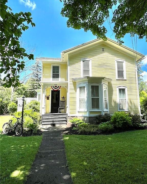 A rare find! Village living awaits in this beautifully restored and maintained historic home in the York school district. Nestled amongst mature trees in the village of York, this home boasts 2270 square feet and 13 rooms,including a formal living room, family room, large walk in entry/mudroom, and a 3 season room. You'll find gleaming hardwood floors throughout, new carpeting in bedrooms and ceramic tile in both bathrooms. Other amenities includeupdated windows, 1st floor laundry, wood stove, gas fireplace, a second staircase, new furnace and hot water heater and more. Relax on the deck overlooking a park like back yard that abuts a field. The 1.5 car garage has plenty of storage/work space along with room for 1 car and an attached storage and garden shed in the side. Truly a must see all the love and care that went into this home over the years.