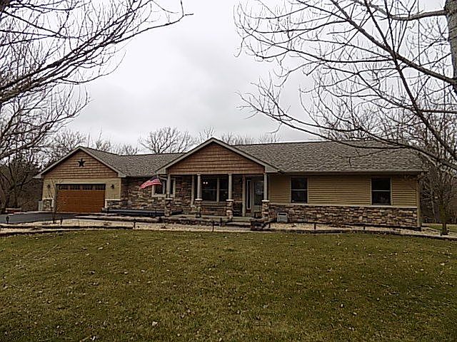 Very tastefully decorated 3+ bedroom 3.5 bath 1 story Ranch style home situated on a quiet cul-de-sac lot with mature trees and a creek in the back. Formal dining room has hardwood flooring, opening to the Great room with a stone fireplace fueled by gas. Custom eat-in Kitchen (includes appliances), dinette area has glass french doors to a multi-level covered deck, paver patio and pond. Beautifully landscaped front and back with deck and pavers. Master Suite has private bath. Mostly finished lower level has Rec room, updated 4th bath and 4th bedroom, den or office. Updates include roof, siding, stone and landscaping 2012 along with water system. Custom made vanities in the baths. HOME WARRANTY BEING OFFERED WITH THIS HOME.