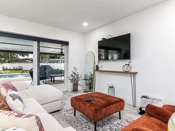 Heated private poolOversized backyardHurricane proof windowsShaded lanai areaFlat screen tvsNew flooringFully stocked kitchen