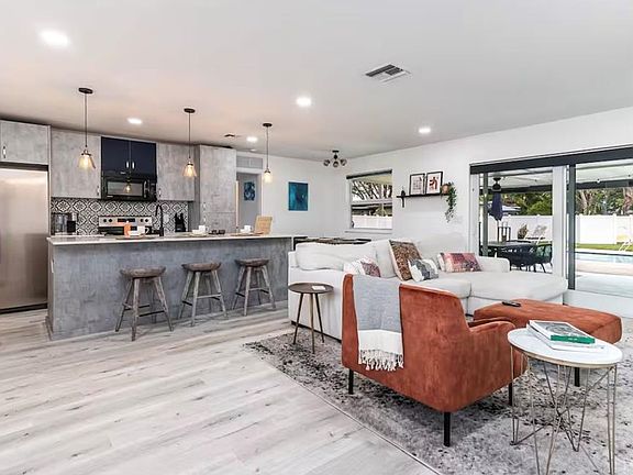 This is a beautiful fully furnished house with a heated private pool, oversized backyard with a shaded lanai area. Stylish 3 bed/2 bath house features new flooring, hurricane proof windows , lovely interior , fully stocked kitchen , flat screen TVs and amazing location. Nestled on a quiet street in high rated school district, within a close proximity to grocery shopping, restaurants, along, parks and beaches. Pool and lawn services are included in the rental price. Available for yearly rental, 6 months minimum. Please, call or text listing agent Yuliya for showings and details.