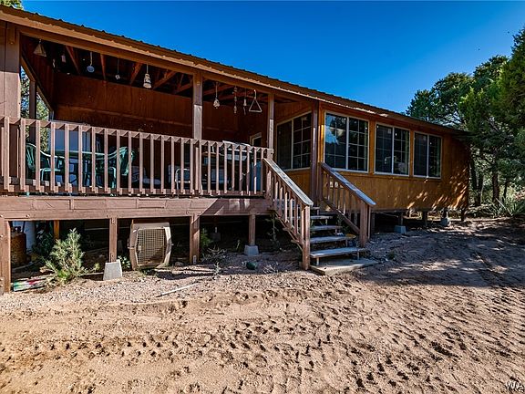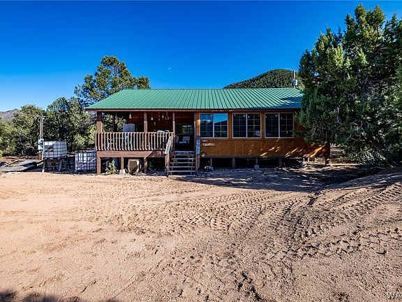 Charming 1995 manufactured home transformed into a cozy single-family retreat on 1.66 acres! This 2-bedroom, 1-bathroom gem boasts panoramic views of the Hualapai Mountains, central AC/heat, a spacious deck, and utility shed. Enjoy the warmth of a pellet stove (needs installed), and convenience with included refrigerator. Unfinished rec/family room offers potential for customization. Experience tranquility and comfort in this cabin-like haven!