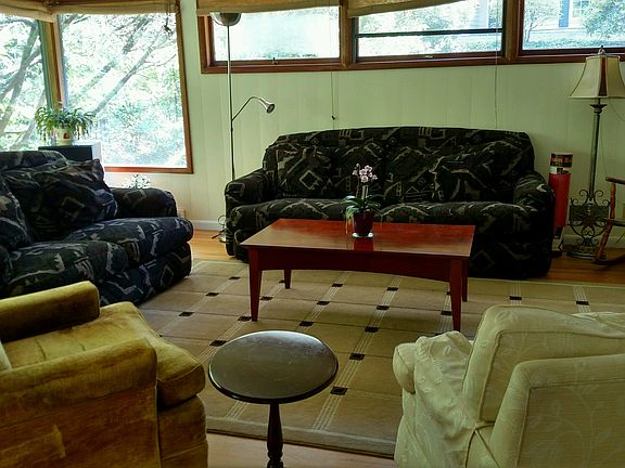This is a remarkably quiet home, nestled up to the Marquam Trail/GreenSpace. Frank Lloyd Wright overtones. Approximately 0.3 acre (over half wooded greenspace) Space: There's over 3000 sq. feet of space, 1500 upstairs and 1500 downstairs. Four bedrooms (3 up & 1 down), two bathrooms. Spacious with teak trim throughout the house. Siding is rare redwood. Lower half of property has a tree house. Large back patio. Kitchen: The kitchen has modern granite, tile floors, stainless appliances. Living Rooms: Wood burning fireplace in upstairs formal living room. Gas burning fireplace in very large downstairs family room. Built into the lower level foundation is a natural walk-in wine cellar. Location & Logistics: Ainsworth Elementary; Lincoln High School Half way between OHSU and PSU. Downtown in 10-12 minutes (a few more on a bicycle). Elevation about 650'. Zillow: $823k RedFin $732k Property Taxes: $9958
