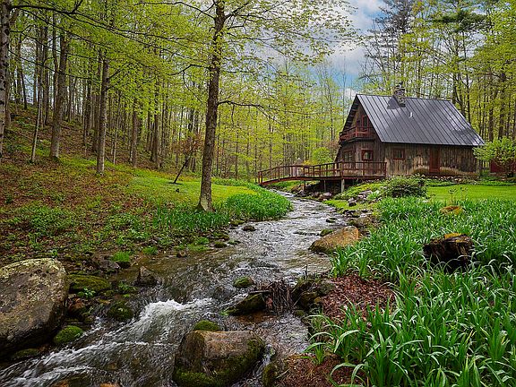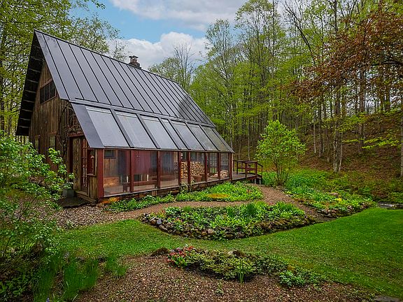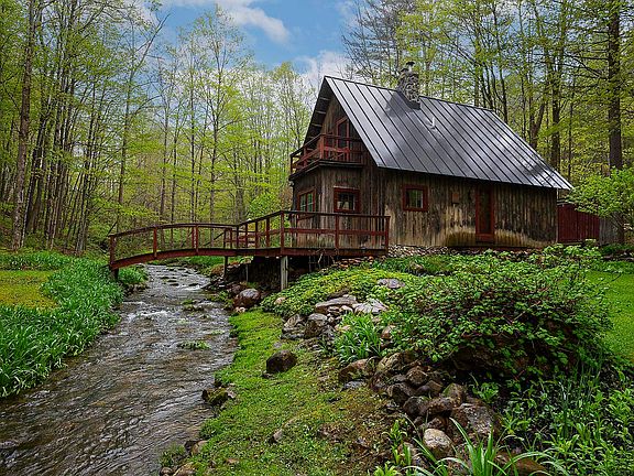Charming Country Cottage with Character, Warmth, and Natural Beauty Step into this beautifully maintained and Uniquely styled home that exudes warmth, charm, and personality in every corner. The cozy living room welcomes you with rich wood tones, exposed staircase detail, and bright natural light filtering through multiple windows and elegant French doors that open to a peaceful outdoor setting. The kitchen is a delightful blend of rustic and modern touches, featuring gleaming wood countertops, classic white cabinetry, and a stainless steel refrigerator-all perfectly complemented by wide plank wood floors and a cheerful light filled dining nook. Each room had been thoughtfully designed, including the vibrant and inviting bedrooms with built-in shelving, whimsical decor, and bold colors that reflect the homes artistic flair. This is a space that tells a story and invites you to make it your own. Surrounding the home are well established perennial gardens that bloom from spring through fall, adding vibrant color and tranquility to the landscape. The house is uniquely situated to boarder Baker Brook offering not only serene water views but also soothing sound of rushing water-a perfect natural backdrop for daily living or weekend relaxation. Enjoy dinner on the exterior deck overlooking gardens and brook, where nature sets the perfect table for any occasion.