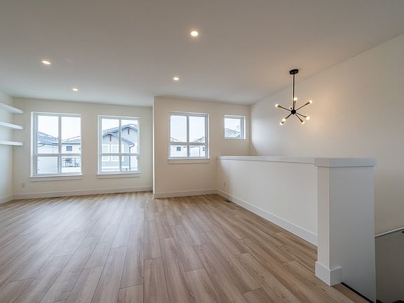 Welcome to this brand new basement entry home offering a bright, modern design with 2 bedrooms on the main floor and a finished daylight basement. The open concept main level is filled with natural light, showcasing a stylish kitchen with stone countertops, abundant cabinetry, and access to a front patio with hillside views. The spacious primary suite features a walk-in closet and a 4-piece ensuite, while a second bedroom and another 4-piece bathroom complete the main floor. The entryway is warm and inviting, with a mudroom that connects to the garage and includes laundry hookups.