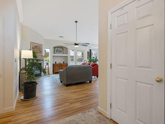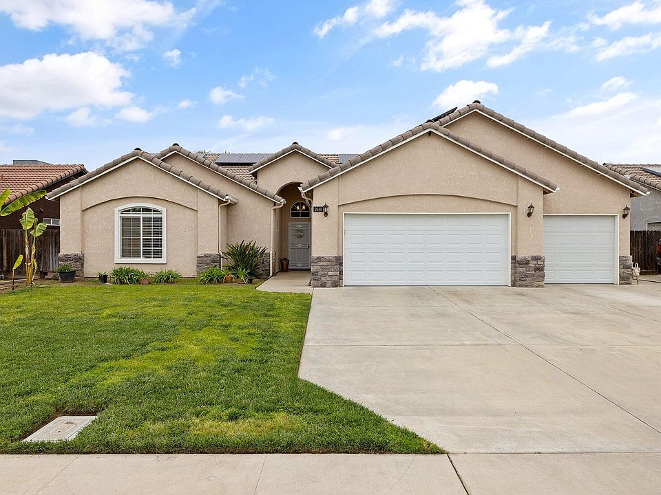 Wonderful find in NW Visalia! This lovely home features a 3-car garage with a convenient pull-through option and includes OWNED solar. Inside, you'll find a spacious open floor plan adorned by high ceilings, alluring laminate wood flooring, and large windows that fill the space with beautiful natural light. At the center of this incredible home is its expansive great room, complete with a cozy fireplace that adds both comfort and charm. The seamless flow from the great room to the lovely dining area and kitchen creates an ideal space for everyday living, as well as gatherings and entertainment. The kitchen is a standout with its beautiful quartz countertops, modern stainless steel appliances, and stylish cabinets, along with a grand breakfast bar. You'll find 3 spacious bedrooms and 2 baths along with a built-in office nook in the hallway. Luxurious owner's suite, featuring a generously sized walk-in closet and a spa-like bath retreat with a soothing soaking tub and a spacious shower. The amazing backyard is made for year-round enjoyment and entertainment and is complete with various patio areas, an outdoor kitchen with bar seating, and a refreshing pool. Don't miss this opportunity to own this incredible home. Schedule your private showing today!