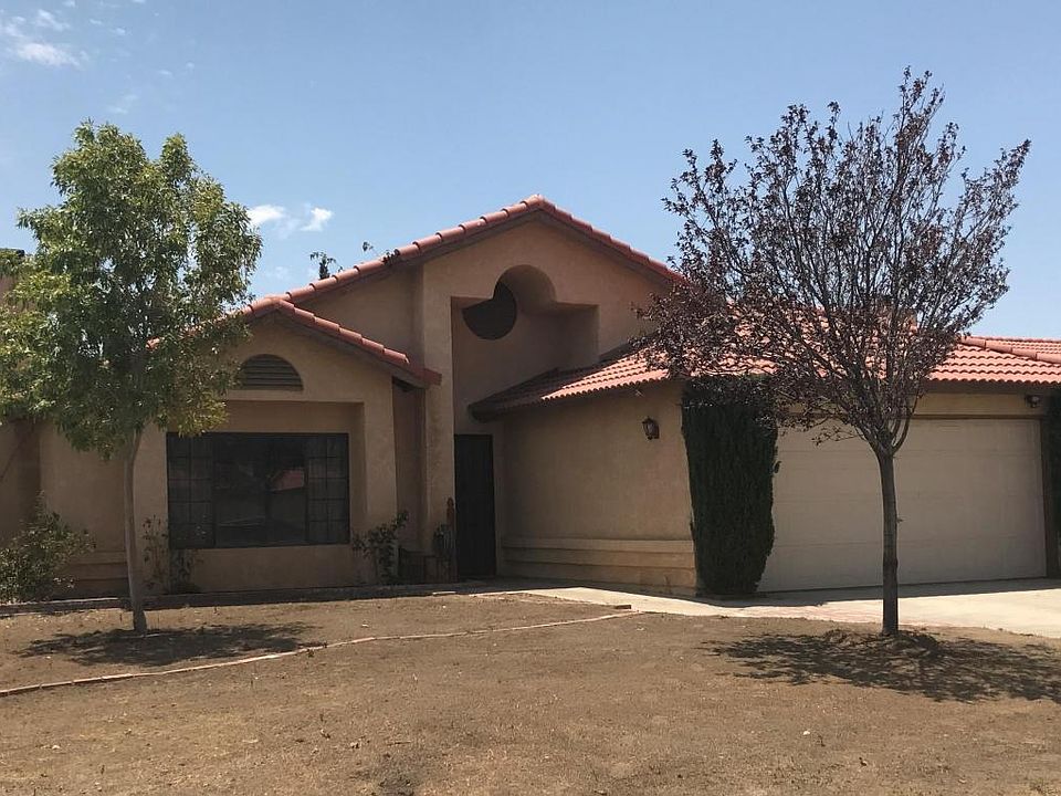 Beautiful single-story Rosamond home. This 3-bedroom/2-bathroom home features an open kitchen design that flows to the dining area, and all bedrooms are a good size. This home also features vaulted ceilings with a living room that has a fireplace, a great way to stay warm during the winter. The master bathroom has two sinks, and the master bedroom has a sliding glass door for easy access to the backyard. The backyard has a covered patio to enjoy during the summer, and a shed that can be used for shortage or as a playhouse. Home is conveniently located near schools and shopping. Your new home awaits.