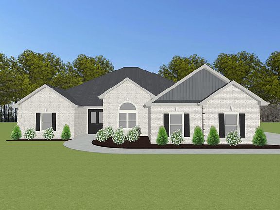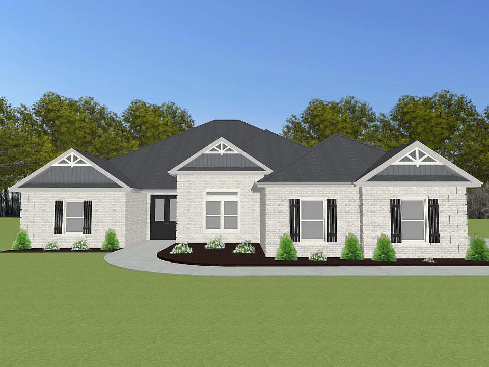 All brick Barrington Plan B is an open plan with a 3 car side entry garage backed by a 2-10 home warranty.. Home has 4 bedrooms, 3 baths. Home has wood plus flooring (Mohawk Revwood, Engineered Hardwood or similar product) in all living areas and bedrooms. Great Room features 12' ceiling, extensive trim, gas-log fireplace with upgraded fireplace treatment, floor outlet, recessed lights, and ceiling fan. Dining room has 12' coffered ceiling, extensive trim including shadow box under chair rail. Open kitchen includes 12' ceiling, soft close custom cabinetry and granite countertops, large 45-degree island with bar seating, stainless appliances (Gas Cooktop, Cabinet Vent Hood, Wall Oven, Wall Microwave, Dishwasher), tile backsplash, recessed and under cabinet lighting, and walk-in pantry. Breakfast has 12' ceiling and extensive trim. Master bedroom has 11' double tray ceiling, recessed lighting, extensive trim and ceiling fan. Master bath has 11' ceilings, free standing tub, large tile shower with two shower heads and rimless shower door, separate toilet area, double vanity with granite countertops and large walk-in closet. The additional bedrooms have 9' ceilings, ceiling fans, and crown molding. The additional baths have 9' ceilings, tile flooring and granite counter tops. Laundry has 9' ceilings, custom cabinet and tile flooring. Home has large rear covered porch with ceiling fan. Home has a tankless water heater. Home includes fully sodded yard, gutters including piping under