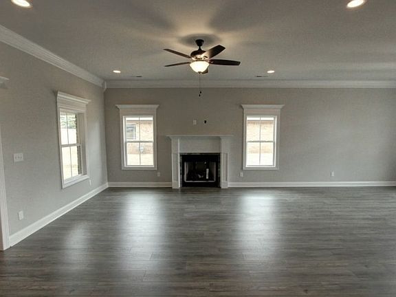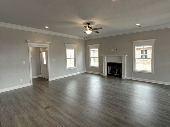 All brick Beechcrest Plan A is an open floor plan with 3 car side entry garage.. Home has 4 bedrooms and 3 baths and is backed by a 2-10 home warranty. Home has wood plus flooring (Mohawk Revwood) in all living areas and bedrooms. Great Room features 10' ceiling, extensive trim, gas-log fireplace, wood plus flooring, recessed lights and ceiling fan. Dining room has 10' ceiling, wood plus flooring and extensive trim. Open Kitchen includes 10' ceiling, custom cabinetry with granite countertops, large island with extra storage and countertop seating, stainless appliances (Electric Range, Dishwasher, Microwave), tile backsplash, wood plus flooring, recessed lighting, and walk-in pantry. Master bedroom has a 10' double tray ceiling, wood plus flooring, extensive trim, recessed lighting, ceiling fan, and sitting area. Master bath has 10' ceilings, glamour tub, large tile shower with shower door, separate toilet area, double vanity with granite countertops and large walk-in closet. The Bonus with nook, one bedroom and bath upstairs make a great isolated suite. All bedrooms and the bonus have ceiling fans, crown molding, and wood plus flooring. All baths have tile flooring and granite countertops. Home has rear porch with ceiling fan. Home has a tankless water heater. Home includes a fully sodded yard, gutters including piping under sidewalks and attractive landscaping. Builder has a closing cost program.