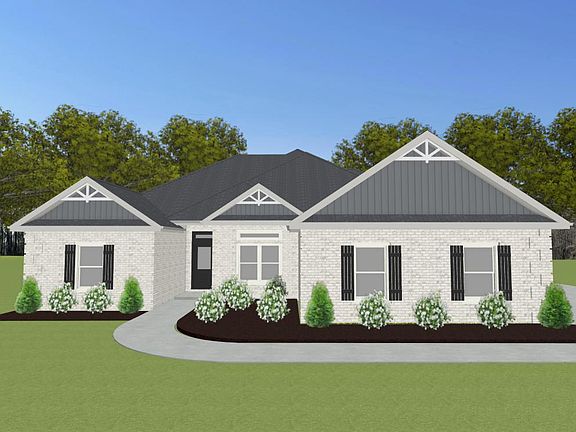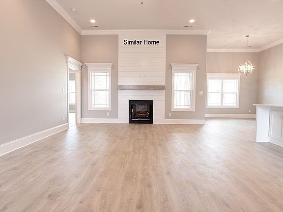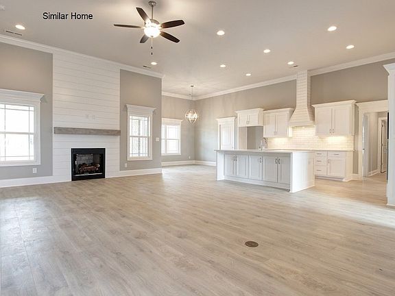 All brick Harrison Plan A is an open plan with a 3 car side entry garage backed by a 2-10 home warranty.. Home has 4 bedrooms, 3 baths. Home has wood plus flooring (Mohawk Revwood, Engineered Hardwood or similar product) in all living areas and bedrooms. Great Room features 12' ceiling, extensive trim, gas-log fireplace with upgraded fireplace treatment, floor outlet, recessed lights and ceiling fan. Dining room has 10' coffered ceiling, extensive trim including shadow box under chair rail. Kitchen includes 12' ceiling, soft close custom cabinetry and granite counter tops, large island with extra storage and countertop seating, stainless appliances (Gas Cooktop, Cabinet Vent Hood, Wall Oven, Wall Microwave, Dishwasher), tile backsplash, wood plus flooring, recessed and under cabinet lighting, and huge walk-in pantry. Breakfast has 12' ceiling. Master bedroom has 11' double tray ceiling, recessed lighting, extensive trim and ceiling fan. Master bath has 11' ceilings, free standing tub, large tile shower with two shower heads and rimless shower door, separate toilet area, double vanity with granite countertops and large walk-in closet. The additional bedrooms have 9' ceilings, ceiling fans and crown molding. The additional baths have 9' ceilings, tile flooring and granite counter tops. Laundry has 9' ceiling, custom cabinet, and tile flooring. Dropzone bench by door to garage. Home has large rear covered porch with ceiling fan as well as additional covered porch behind the brea