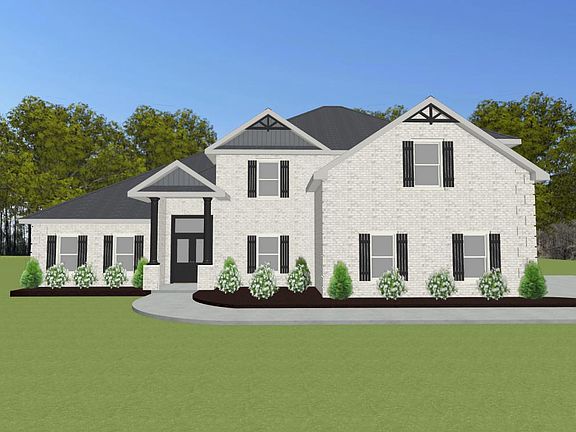 The Foresthill Plan D is a two story home with 3 car side entry garage and is backed by a 2-10 home warranty.. Home has 4 bedrooms and 3.5 baths. Master suite and half bath are downstairs. Three bedrooms and a bonus room are upstairs along with 2 baths. Home has wood plus flooring (Mohawk Revwood, Engineered Hardwood, or similar product) in all living areas and bedrooms. Great Room features 12' ceiling, extensive trim, gas-log fireplace with upgraded fireplace treatment, recessed lights and ceiling fan. Dining room has 9' coffered ceiling and extensive trim including shadow box under chair rail. Kitchen includes 9' ceiling, soft close custom cabinetry and granite countertops, large island with bar seating, stainless appliances (Gas Cooktop, Cabinet Vent Hood, Wall Oven, Wall Microwave, Dishwasher), tile backsplash, recessed and under cabinet lighting, and huge walk-in pantry. Breakfast has 9' ceiling and extensive trim. Master bedroom has 11' double tray ceiling, extensive trim, recessed lighting, and ceiling fan. Master bath has 11' ceilings, glamour tub, large tile shower with two shower heads and rimless shower door, separate toilet area, double vanity with granite counter tops and huge walk-in closet. The home has hardwood stairs leading to the second story. The additional bedrooms and bonus room have ceiling fans and crown molding. The additional baths have tile flooring and granite counter tops. Laundry has 9' celling, custom cabinet, and tile flooring. The home has a t