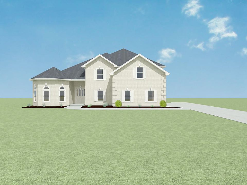 The Greenland Plan D is a two story home with 3 car side entry garage and is backed by a 2-10 home warranty.. Home has 4 bedrooms (Master bedroom plus one are downstairs), 3.5 baths and an upstairs bonus room which could be a 5th bedroom and a study. Great Room features 12' ceiling, extensive trim, gas-log fireplace with raised stone hearth, wood plus flooring and recessed lights and ceiling fan. Study features 12' ceiling, extensive trim and wood plus flooring with closet and half bath next to it, it could be a 5th bedroom or a nursery. Dining room has 9' coffered ceiling, wood plus flooring, extensive trim including shadow box under chair rail. Kitchen includes 9' ceiling, custom cabinetry and granite counter tops, large island with raised bar seating, stainless appliances including gas cooktop, wall oven, wall microwave and dishwasher, tile backsplash, tile flooring, recessed lighting, and huge walk-in pantry. Breakfast has 9' ceiling, tile flooring and extensive trim. Laundry has custom cabinet, tile flooring. Isolated Master bedroom has 9' ceilings plus a double tray, recessed lighting, extensive trim and ceiling fan. Master bath has 11' ceilings, glamour tub with tile surround, large corner tile shower with tile bottom and rimless shower door, separate toilet area, double vanity with granite counter tops and huge walk-in closet. Second bedroom and bath down have wider doors to accommodate wheelchairs. The home has hardwood stairs leading to the second story. The additio