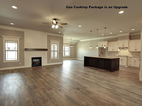 All brick Hillsdale A is an open plan with 3 car side entry Garage and is backed by a 2-10 home warranty.. Home has 4 bedrooms, 3 baths and a sunroom. Home has wood plus flooring (Mohawk Revwood) in all living areas and bedrooms. Great Room features 10' ceiling, extensive trim, gas-log fireplace, wood plus flooring, recessed lights and ceiling fan. Dining room has 11' tray ceilings, wood plus flooring and extensive trim including shadow box under chair rail. Open Kitchen includes 10' ceiling, custom cabinetry with granite countertops, large island with extra storage and countertop seating, stainless appliances (Electric Range, Dishwasher, Microwave), tile backsplash, wood plus flooring, recessed lighting and large walk-in pantry and drop zone bench. Breakfast has 10' ceiling, wood plus flooring and extensive trim. Master bedroom has a 10' double tray ceiling, extensive trim, recessed lighting, ceiling fan and large walk-in closet. Master bath has 10' ceilings, glamour tub, tile shower with shower door, separate toilet area and double vanity with granite. Large sunroom has vaulted ceiling, wood plus floor and ceiling fan. Additional bedrooms have wood plus flooring, crown molding and ceiling fans. The additional baths have tile flooring and granite countertops. Home has a tankless water heater. Home has a rear covered porch with fan. Home includes a fully sodded yard, gutters including piping under sidewalks and attractive landscaping. Builder has a closing cost program.