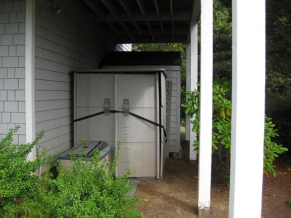 Great ocean views from this 2BD/2BA home! Just across the street from the beach! Enjoy the ocean breeze from the huge deck or cozy up to the wood stove in the light and bright living room upstairs! And 3 sheds for extra storage.