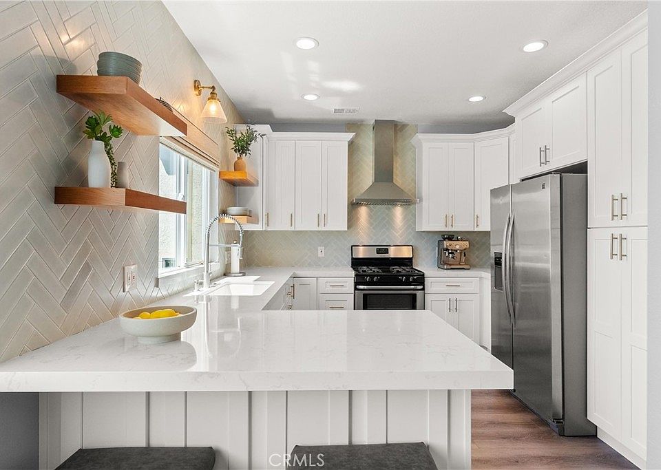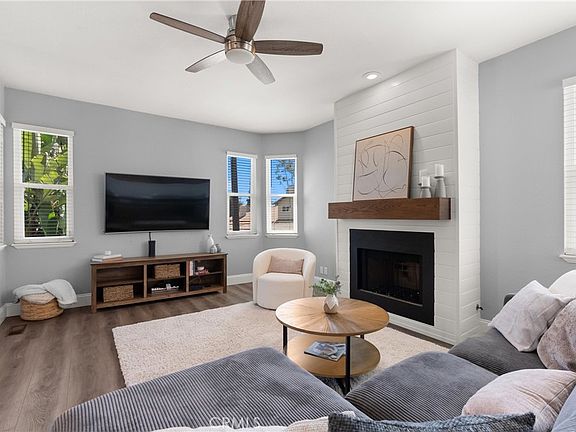 This end-unit in Bay Laurel offers 1,430 sqft. of well-designed living space with a dual-primary layout, 2.5 bathrooms, and a versatile loft. The home has been thoughtfully remodeled with new flooring, fresh paint, updated finishes, and a redesigned fireplace, all enhanced by abundant natural light throughout. The main level features an open living and dining area, a modern kitchen, a powder bath, and a primary suite with full bathroom. Upstairs, the loft flexes easily as a home office, media lounge, or potential third bedroom, while the second primary suite boasts a private balcony and full bath. Outside, the wraparound patio has been upgraded with low-maintenance turf in place of concrete—perfect for grilling, entertaining, or pets. The attached two-car garage offers direct access into both the home and outdoor space. Additional highlights include central A/C and a prime Costa Mesa location near beaches, the Back Bay, golf, shopping, and dining—making this home the complete package for today’s lifestyle.