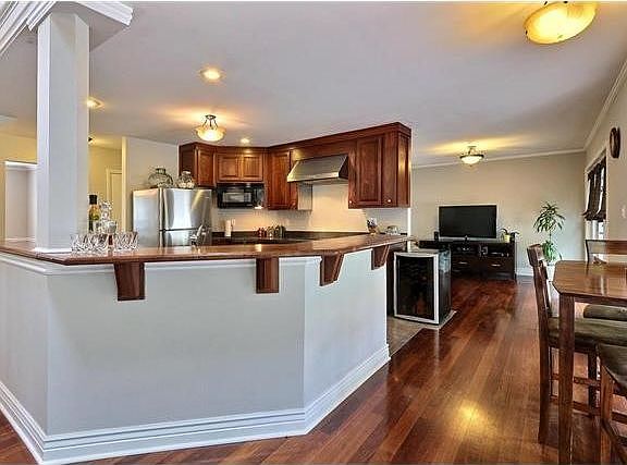 - Kitchen: Breakfast Bar, Custom Cabinetry