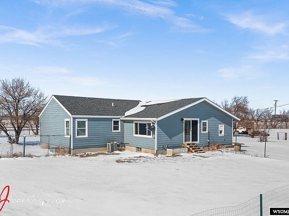Looking for a little slice of Wyoming land that can also have horses? This property is conveniently located in between Casper and the Bar Nunn area and still remains private with spectacular views of Casper Mountain. The upper living area has an open concept that holds two living areas, two bedrooms and two bathrooms. The spacious kitchen has upgraded cabinets and stove. Extra living space is available as the unfinished basement is able to be transformed with wiring already in place.