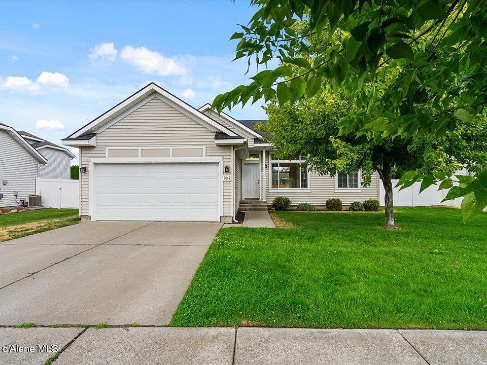 Clean, move in ready Rancher in Coeur d'Alene! This charming 3 bedroom, 2 bathroom home offers 1,111 sq ft of comfortable, single-level living on a spacious .22-acre lot. The open-concept layout is bright and inviting, featuring vaulted ceilings, large windows, kitchen with abundant storage and 10 ft ceilings throughout the house. The primary suite includes a walk-in closet and full ensuite bathroom. Extensively remodeled in 2021 with a new roof, flooring, interior paint, updated bathrooms (tile flooring, new vanities), kitchen sink, baseboards, doors, and fixtures. Recent upgrades include a new furnace, A/C, range, dishwasher, and garage door. ALL the big ticket items are done, so no need to stress! Enjoy the outdoors in the fully fenced backyard with raised garden beds, a sprinkler system (front & back) and a brand-new WiFi sprinkler controller. The attached 2-car garage completes the package!