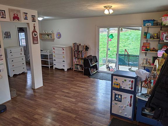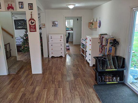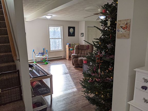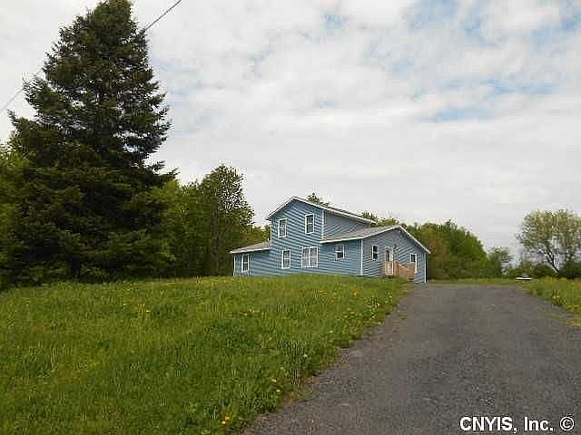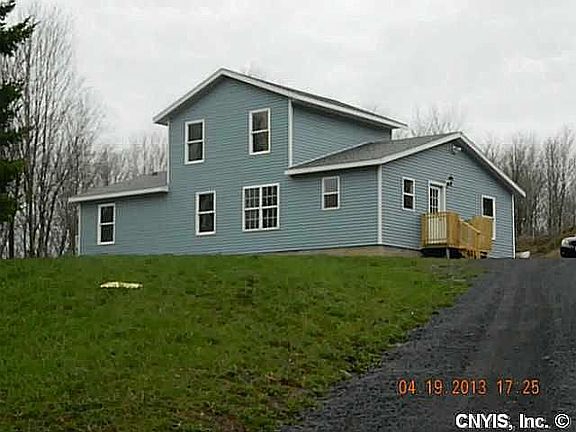 This 4 bedroom 1 bathroom home is 1700 square feet with a spacious open floor plan. Master bedroom with custom closets and second bedroom downstairs. There are two additional bedrooms upstairs. The bedrooms are carpeted, the bathroom has vinyl, and the main living area has laminate wood floors. The home was built in 2012 but not occupied until 2014. The house has electric baseboard heating in all rooms. It has a well and septic tank. The home sits atop a hill with gorgeous views on two acres of land with the entire backyard fenced in. Most of the property is cleared but is surrounded by woods. It is quiet country living out here. Through the sliding glass door is a large deck to the backyard. There is a small prefab shed near the house. On the back of the property is a separate fenced area with an 8x16 A-frame chicken coop repurposed for goats and a 10x20 shed currently being used to house chickens and rabbits. This is the perfect property for a small-scale homestead. Centrally located between Oswego, Auburn and Syracuse.