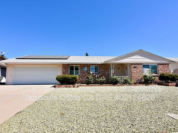 Cozy single story home in Sun City 55+ community. This property features easy maintenance, living room, hardwood flooring, air conditioning, window coverings, fenced back yard, and nice patio cover! There is an added benefit of having solar at the property!! This helps your electric bill be lowered each month as the sun shines! Listing and marketing information provided is deemed reliable and accurate but not guaranteed - agent, broker, and resident should confirm all property information and specifications before entering rental agreement. Visit our website to review our rental criteria prior to submitting an application. A $54 non-refundable application fee per adult will be charged. Every person over 18 who would reside at the property must complete and submit a rental application. We are a fair housing provider. All applicants will be subject to the same application criteria. For REDUCED move-in costs, talk to us about our Security Deposit Replacement Program! All residents are enrolled in the Resident Benefits Package (RBP) for $39/month which includes HVAC air filter delivery, our best-in-class resident rewards program, identity protection, and much more! More details upon application. *We do not accept applications from any 3rd party service including Zillow. Please apply on our website directly. PURE Property Management of California DRE #02124826 Amenities: Refrigerator, Washer/Dryer, Microwave, Dishwasher