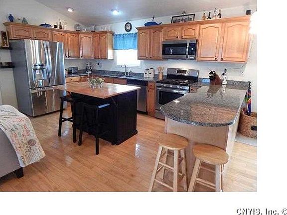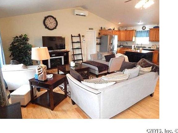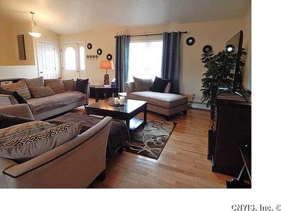 Inviting home only 5 minutes from Ft. Drum, Watertown, and shopping. This 2,688 sq. ft. 4 bedroom 3 full bath home offers an open floor plan that makes it great for entertaining friends and family. The well-appointed kitchen includes granite counters, stainless appliances, maple hardwood floors and lots of natural light. Upstairs boasts a master bedroom & master bath, a full bath, plus two additional bedrooms. Downstairs you'll find a 4th bedroom, full bath, laundry, Large family/rec room, office, and a huge storage room. All this plus central A/C, whole house generator, & fenced yard w/deck!