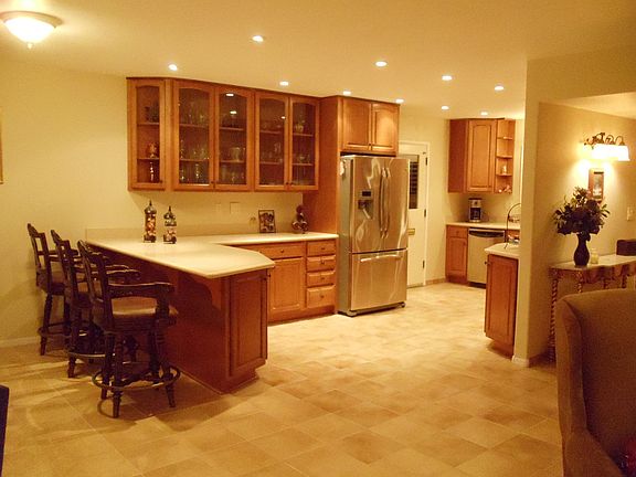 THIS HOME IS IN THE SENIOR COMMUNITY OF SUN CITY (MENIFEE). THE NEW KITCHEN HAS STAINLESS STEEL GE PROFILE APPLIANCES--REFRIGERATOR, MICROWAVE, STOVE, DISHWASHER. THE NEW DIAMOND CABINETS HAVE A RECYCLING CENTER, A LAZY SUSAN, SLIDE OUT DRAWS FOR THE PANTRY AND PANS, AND A SLIDE OUT SPICE RACK. THE COUNTER TOPS ARE A GROUND QUARTZ WITH AN INTEGRATED SINK. THE WHOLE KITCHEN AND LIVING ROOM HAVE BEEN REMODELED WITH BULL NOSE CORNERS AND NEW DESIGNER PAINT THROUGHOUT THE HOME. IT HAS A EATING BAR AND A SEPERATE ROOM FOR THE DINING ROOM WITH A GAS FIREPLACE. THE DINING ROOM IS AN ADDED 200 SQ. FT. IT IS A 3 BEDROOM, 2 BATH HOME. ONE OF THE BEDROOM IS BEING USED A TV ROOM. A UTILITY ROOM FOR WASHER/DRYER, GOLF CART AND CRAFT OR OTHER ITEMS. 2 CAR GARAGE WITH 2 ACCESS DOORS FROM KITCHEN AND UTILITY ROOM. THIS HOME IS IN THE CORE OF SUN CITY IN THE SUN CITY CIVIC ASSOCIATION. THE ASSOCIATION DUES ARE APPROXIMATELY $286 A YEAR. IT HAS LOT OF AMENETIES--POOL, SPA, TENNIS, LAWN BOWLING, ETC. YOU CAN DRIVE YOUR GOLF CART IN THE AREA. CLOSE TO SHOPPING, HOSPITALS, FREEWAY ACCESS AND TO THE WINE COUNTRY OF TEMECULA AND PECHANGA RESORT. A GREAT FIND IN SUN CITY. YOU WON'T BE DISAPPOINTED IN THIS UPGRADED HOME. COME TAKE A LOOK AND MAKE US AN OFFER.