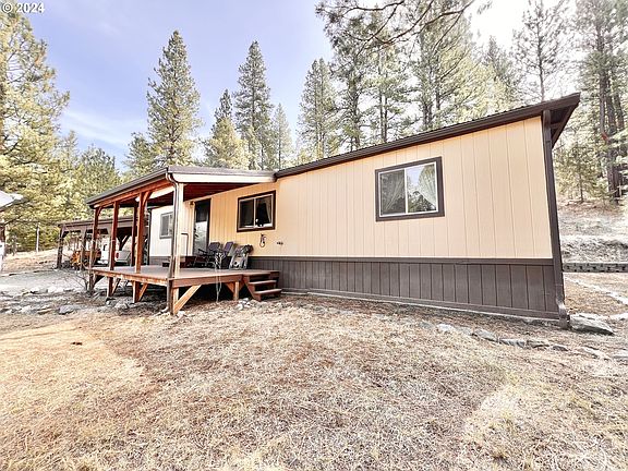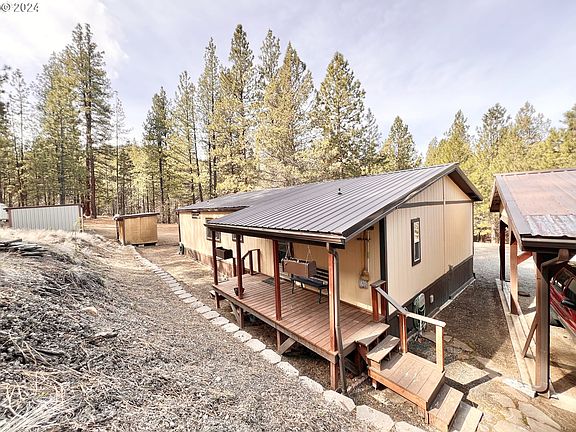 Experience the tranquility of a private retreat bordering thousands of acres of BLM land. This spacious 1,296 sqft home features 3 bedrooms and 2 bathrooms, perfect for relaxation. Living in the 1984 Fleetwood manufactured home, you'll enjoy entertaining in the open concept living and dining areas. Store your vehicles under the 24' x 30' carport with attic storage. Keep your equipment safe in the 14' x 24' shed. Benefit from irrigation rights to the tributaries of Little Pine Creek for maintaining your lush surroundings. Don't miss out on this serene mountain setting that feels like a park. Please review with your lender, home has been moved twice and the household water comes from a spring. Property is zoned for 5 acre minimums and in a timber deferral for taxes.