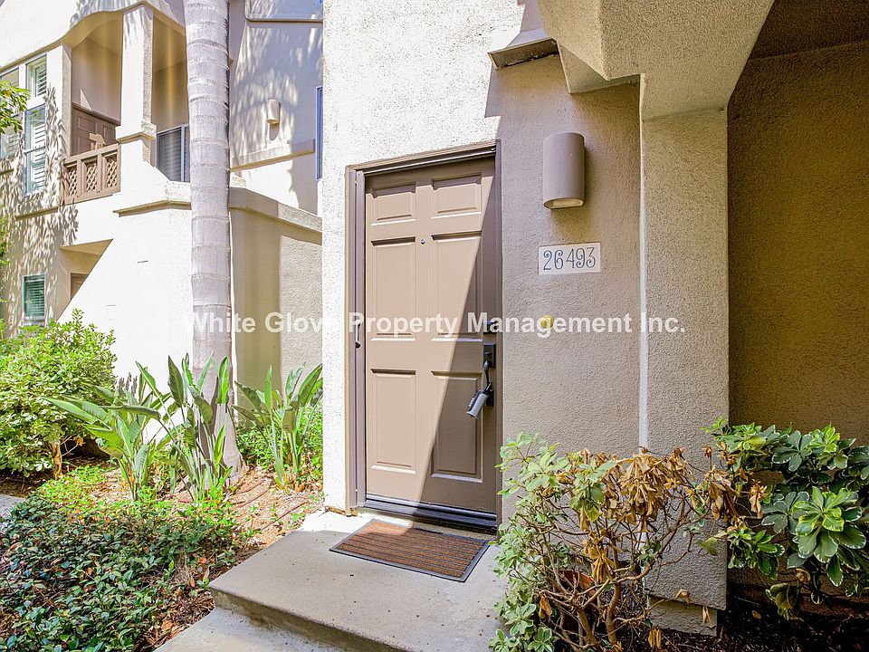 Welcome to this beautifully maintained 2 bedroom, 2 bathroom end-unit condo in the sought-after Ashton community of Mission Viejo. This bright and open home features soaring vaulted ceilings, a cozy fireplace, recessed lighting, and a spacious balcony perfect for relaxing or entertaining. Updated kitchen boasts granite countertops and stainless steel appliances, seamlessly flowing into the dining and living areas. The primary suite offers generous closet space and a private en-suite bathroom, while the second bedroom and full hall bath are ideal for guests, family, or a home office. Enjoy the convenience of an in-unit washer/dryer, central A/C and heat, a one-car attached garage, plus an additional community parking space. As a resident, you'll have access to the refreshing community pool and spa, as well as the exclusive amenities of Lake Mission Viejoincluding boating, beaches, concerts, and more! Perfectly located near top-rated schools, parks, shopping, dining, and entertainment. Trash included.