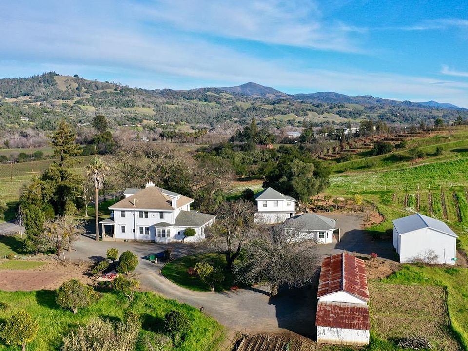 Enchanting 1912 colonial estate residence on 15.81+/- bucolic acres in Northern Sonoma County renowned Alexander Valley Wine Appellation. Fabulous views overlooking vineyards, valley & Russian River. This stately residence played a prominent role in the rich history of Asti and the Italian Swiss Colony Winery. It served as the headquarters, living quarters and entertainment center for the winery. Numerous dignitaries and even royalty were entertained there. The property features guest house, caretaker's cottage, equipment storage barn, several outbuildings, two parcels 6.07 & 9.74 ac, gorgeous gardens and seven acres +/- planted to premium cabernet sauvignon vineyards. Potential for winery. Located on a quiet country lane. Minutes to Geyserville, Cloverdale, Healdsburg and Lake Sonoma.