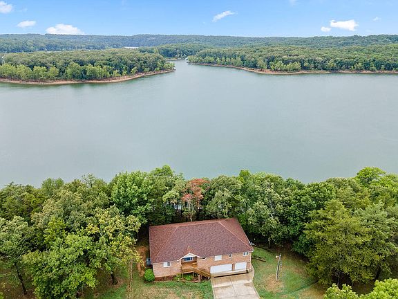Lakefront home sits 1 ft from the Corps line and has fabulous views! This spacious home features a large primary bedroom with updated bathroom, walk-in closet, and private lakefront deck. The living room has a great lake view with deck and gas fireplace. The kitchen has been updated with stainless steel appliances and granite countertops. Two dining areas give you options. A large family room downstairs opens to a deck with hot tub. There are 3 more bedrooms, 3 full baths, plus a bonus room, laundry room and plenty of storage. A workshop off the 3 car garage is great for woodworking or hobbies. The 10x20 boat slip for $25,000 is in the neighboring Green Shores subdivision, and you are just minutes from Shell Knob and the best fishing on the lake!