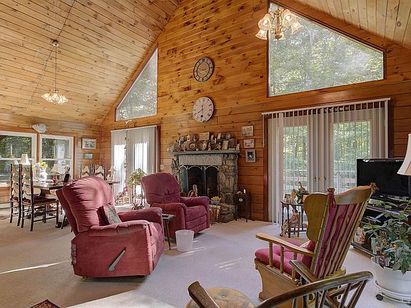 Charming Log Home w/large detached two story garage set privately in the woods on 2 lots totaling 10 plus acres. Just minutes to Rt 11 & The Tip of Alton Bay on Lake Winnipesaukee. Features include: vaulted ceilings, stone fireplace, farmers porch, wrap-around deck & multiple skylights. House sits on 5.25 acre lot.....Garage on 5.71 acre lot. Long paved driveway provides easy access to be structures. Mountain fed stream and small pond add to this natural setting. Snowmobile club trail runs through lower edge of the property.