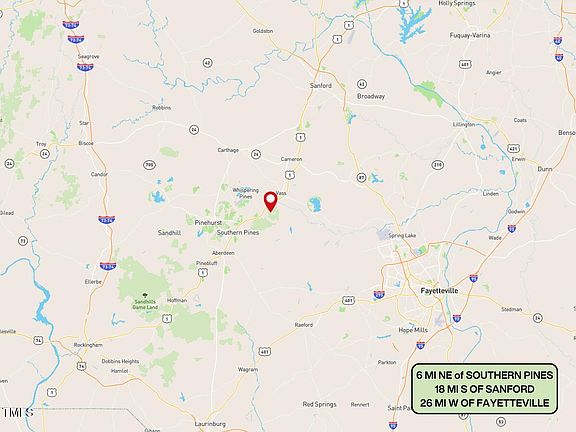 This 7.01-acre property in Vass, NC, is a must-see for anyone looking for a mix of natural beauty and convenience. With 500 feet of paved frontage on Aiken Road, this parcel comes ready with county water, electricity, and telephone access available for connection at the road. Soil maps indicate the land is suitable for a conventional septic system(no official testing done), so it's ideal for building a home, starting a hobby farm, or setting up a quiet retreat. The land offers a peaceful setting with a half-acre pond surrounded by mature trees, making it feel like a private escape. An old cabin and two stick-built tobacco barns add character to the property—they're perfect for restoration projects, storage, or just enjoying their rustic charm. There is a power line easement across the property, but it leaves plenty of space for building or outdoor activities. Outdoor lovers will appreciate that this property is less than 1/4 mile from the Walthour Moss Foundation. This 4,000-acre preserve has miles of equestrian trails and untouched wilderness, making it an ideal spot for horseback riding, hiking, or just soaking in nature. Conveniently located off US-1, you're only minutes from Southern Pines, Aberdeen, and Pinehurst, where you'll find shopping, dining, and some of the country's top golf courses. This property is full of possibilities, offering a unique blend of rural charm, historic touches, and easy access to nearby amenities. It's ready for your vision of a new home, a retreat, or a small homestead. Key Features: - 7.01 acres of wooded land with plenty of privacy - 500 feet of paved frontage on Aiken Road - County water, electricity, and telephone available at the road - Soil maps indicate suitability for a conventional septic system (no testing done) - Half-acre pond surrounded by mature trees - Old cabin and two stick-built tobacco barns on-site, ideal for restoration or storage - Power line easement across the property - Less than 1/4 mile from the Walthour Moss Foundation, a 4,000-acre preserve with equestrian trails and wilderness - Minutes from Southern Pines, Aberdeen, and Pinehurst, offering shopping, dining, and world-class golf - Convenient access to US-1, providing easy connections to surrounding areas. - Verizon 4G LTE Service