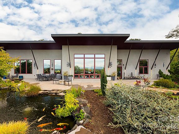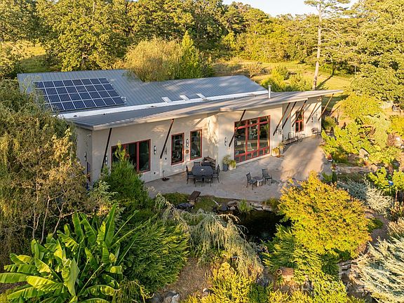 Your piece of paradise begins with this stunning, custom, energy-efficient contemporary home overlooking pastoral nature with views to Mt. Pisgah. The home marries earth & sky with its heat-gaining foundation perched on a south-facing knoll to the expansive windows & sky views. Solar panels collect usable energy while the floor captures & releases the heat. The one-level home features a split bedroom plan centered by a great room that flows to the outside in two directions. The windows to the south overlook an extensive patio & koi pond with waterfalls & dramatic landscaping. To the North is a screened porch linked to a lush shade garden. The primary suite sits to the west past a private office & laundry/mudroom. The East wing features another bedroom ensuite, 3rd bedroom, meditation room & pet room linked to an outdoor fenced area. The acreage features a natural pond, meditation circle, two out-buildings, extensive landscaping, growing gardens & orchard. Ask us for a list of features.