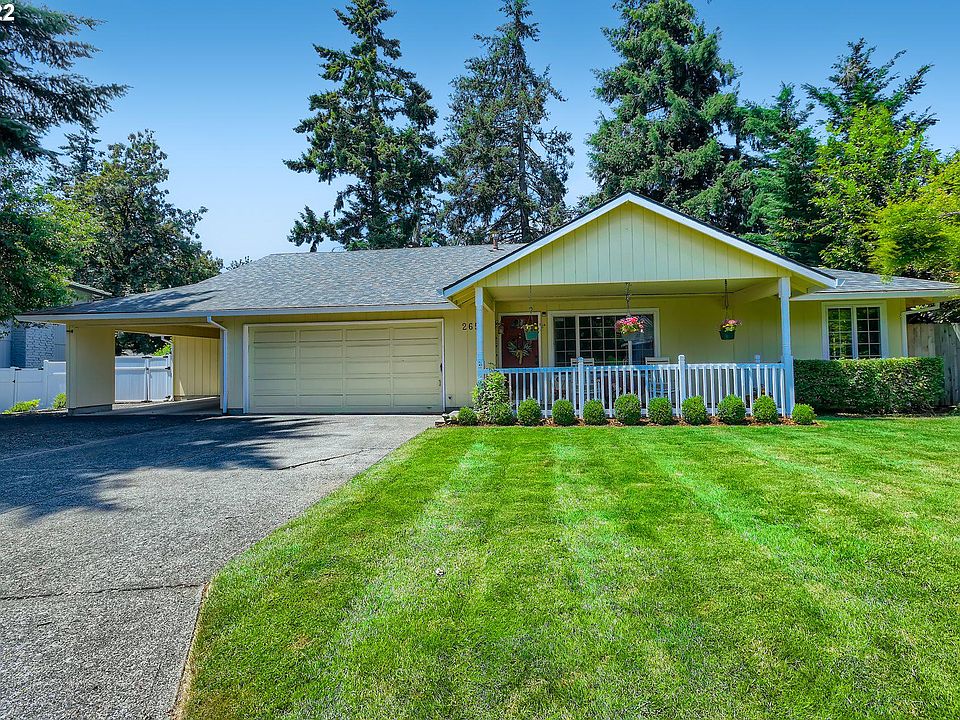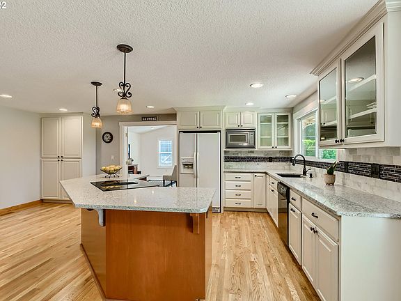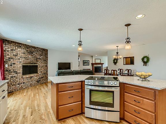 One level home in well established Oregon City neighborhood has easy access to I-205 No HOAs. Close to schools & parks. Large mature landscaped lot includes a 12 x 14 pavilion, sports court with an adjustable rim and full size backboard, & 2 decks. Many recent updates. Gleaming hardwood floors. Quality kitchen update with soft close drawers, quartz & eating bar. Large Family room has soaring ceilings. 4th BR could be used for office or game room. Formal living room w/pellet stove.