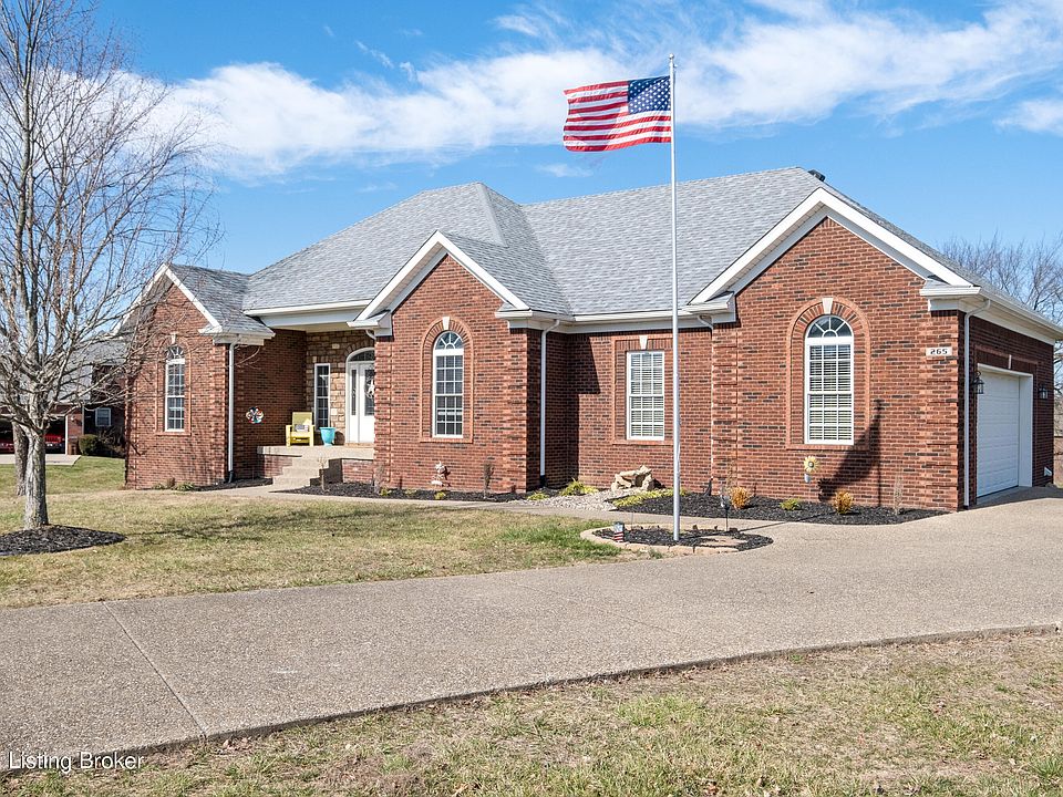 Welcome to 265 Andrew Parkway, a lovely low maintenance ranch home that sits on just over an acre. This wonderful home is located in Goebel Crossings. It features lots of hardwood floors, tall ceilings and high end finishes. The living room has a cathedral ceiling, a fireplace and is open to the kitchen. The kitchen has custom cabinets, a dining area and is connected to a formal dining room. The primary bedroom has a bathroom on-suite with a large walk-in closet. The fully finished basement walks out to a large patio and is covered by the above deck. The basement is perfect for entertaining with two different gathering areas and a custom built bar. Lots of house here for the money call today.