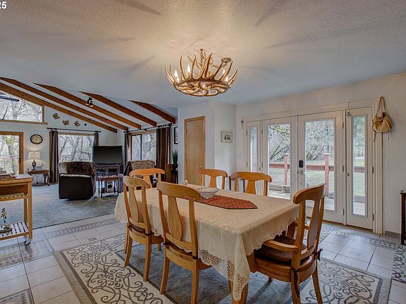 This beautifully maintained, custom-built, one-owner home offers privacy, space, and stunning views. The spacious living room features vaulted ceilings, a cozy wood stove with a rock hearth, and bay windows that bring in natural light. The large kitchen boasts real wood cabinets, tile flooring, a kitchen island, a cooktop stove, a wall oven, a dishwasher, and a charming bay window. The dining room opens to the outdoors through French doors, leading to a back deck with breathtaking tree and mountain views. The primary suite is a true retreat, featuring a soaker tub, a step-in shower with dual heads, and a double closet. The home includes three bedrooms plus an office, a main-floor laundry room with storage, and a mudroom with an attached bath. The oversized two-car garage has two separate doors, and there’s additional RV parking. Outside, enjoy the convenience of a small storage shed and the beauty of cedar wood siding. Don’t miss this private and peaceful property!