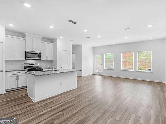 Welcome to your luxurious new home! This brand-new townhome offers bright, airy, open-concept living. The centerpiece is the chef's kitchen, featuring elegant granite countertops, sleek stainless-steel appliances, and a spacious walk-in pantry, perfect for all your culinary creations. With ample counter space, meal prep is effortless, whether for a quick breakfast or a gourmet dinner party. Step outside to your private patio, ideal for cookouts with friends or enjoying your morning coffee. Your spacious master suite is a serene retreat, complete with an ensuite bath featuring modern fixtures, perfect for unwinding after a long day. Two additional bedrooms are ideal for guests, family, or a home office, connected by a convenient Jack and Jill bathroom. This townhome also includes a two-car attached garage, providing secure parking and extra storage space. Convenience is paramount, with a prime location just minutes from a variety of restaurants and shopping options. Easy access to I-75 makes commuting simple, and the Atlanta airport is easily reachable for your travel needs. Don't miss the chance to make this exquisite townhome yours. Move-in ready now!