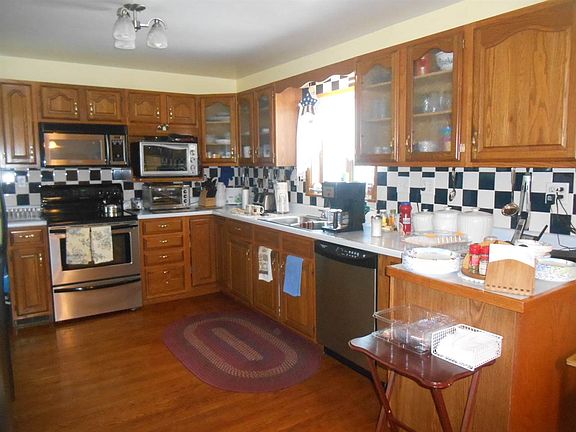 PRICED RIGHT...This charming home has been lovingly maintained and is move in ready! It has a large kitchen with ample cabinets and stainless steel appliances that do convey with the sale. The kitchen is open to the dining room and there are hardwood floors throughout most of the home. The living room is huge and great for entertaining. There are two full baths. The master bedroom has a fantastic master bathroom with Jacuzzi tub and separate shower. The master bedroom also has double doors to a covered deck on the back of the home. There is also a main floor laundry room (washer and dryer stay). The upstairs has a second bedroom and small room that could be a third bedroom if needed.The basement is partially finished with recreational room and laundry room. The home is heated with a forced air gas furnace with central air. There is also a wood stove in the basement that could certainly heat the home. There is a detached two car garage and a portion of the yard is fenced for toddlers or pets! Better look at this today!