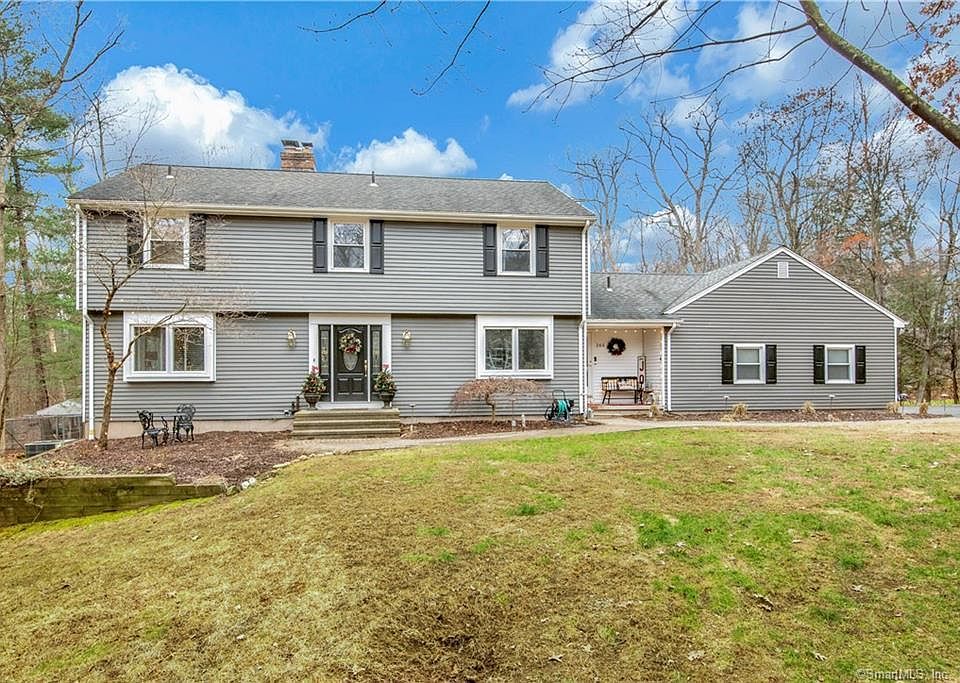 This colonial style home is move-in ready and set back from the road to ensure privacy. Enter the open concept kitchen which includes white cabinets, white tile backsplash, stainless steel appliances (Bosch dishwasher) and Corian countertops. From the kitchen head to the family room or proceed to the right and step down to the Sunroom. The sunroom walks out to the deck which runs the length of the back of the house and overlooks a spacious backyard. The family room has a whitewash brick fireplace and leads to the living room. The living room includes a 2nd fireplace. The kitchen, family room, living room and dining all have oak hardwood floors. Round out the 1st level with a half bathroom. On the 2nd level you will find wall to wall carpeting in the 4 bedrooms. The master suite has 3 closets (including one walk-in) and a full bathroom which has been tastefully remodeled with a double quartz vanity, tile floor, and fully tiled shower. The 2nd level also includes a 2nd full bathroom and laundry room. The basement provides opportunities for additional living space with one room ready to be finished and a large 2nd room which includes the mechanicals, a workshop, and storage space. You will also find extra storage space above the two car garage. Additional improvements include updated light fixtures throughout and ring doorbells. The home is centrally located in Avon close to schools, Golf Club of Avon, and is short drive to the shopping and restaurants on Rt 44.