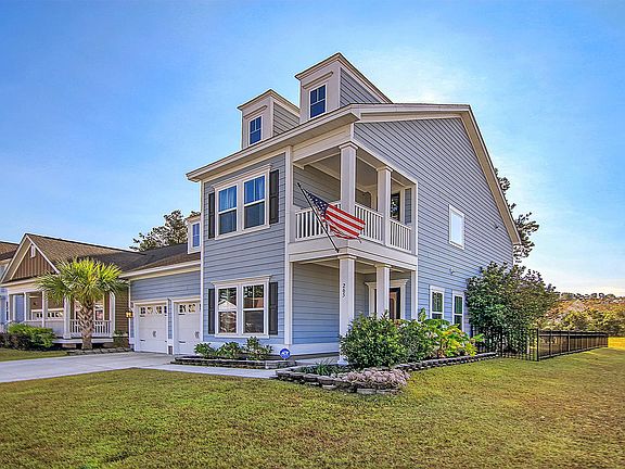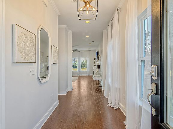 Well-maintained and beautifully-appointed 4 bedroom/4 bath home in the popular lakeside community, The Coves. This home offers desirable features like a first floor guest suite with ensuite bath, double front porches, and a private backyard. Cement board siding, raised mulch beds and added landscaping create an attractive curb appeal. Step inside and find hardwood floors extending throughout the living spaces, kitchen and first floor bedroom. An island kitchen with modern white and black cabinetry with storage pull-outs, granite countertops, subway tile backsplash, gourmet kitchen appliances including a hooded vent, built-in wall oven and microwave, five-burner gas cooktop and French door Smart refrigerator with Insta-View door, and double door pantry. A large eat-in kitchen nook withcustom light fixture and living room with added recessed can lighting provide great space for any family. Step outside to the screened-in porch overlooking a fenced-in backyard with private wood views. Back inside, head upstairs to find three additional bedrooms and an oversized loft area, the perfect space for a playroom, man cave or office space. A full bath with double sink granite vanity and tile floors connects to the loft space and to a secondary bedroom with walk-in closet. The Owner's Suite offers two walk-in closets, a tray ceiling, walk-out access to the second story porch and an ensuite bath with double sink granite vanity, tile floors, a tile shower and separate soaking tub with tile surround. An additional secondary bedroom and full bath complete the second floor. Additional home features include a large first floor laundry room with included front-loading washer and dryer, a two-car garage with epoxy-coated floors and extra ceiling height for great storage opportunities, and easy access to the community's boat dock and lakeside trails. The Coves offers a 300-acre lake, perfect for kayaking, canoeing, and fishing and surrounding trails for walking, biking and golf carts. You'll fall in love with your home and this incredibly unique community!