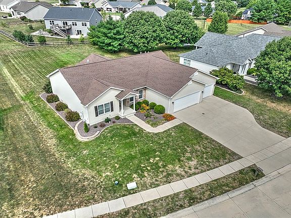 1 owner, 4 BR - 3 Bath Ranch with 3 car garage in Mt. Zion's Carrington Estates. Split bedroom, Great room concept. 9' ceilings on both levels. Great room offers a gas fireplace flanked by built in bookcases. Large laundry/mud-room off garage entry. The master suite includes a jetted tub and a recently updated walk in shower and double walk in closets. Basement finished with a large rec-room with built in sound system, spacious 4th bedroom with walk in closet and the homes 3rd full bath. There is also lots of additional space for storage or future living space. The sump pump has a hydro back up. There is a 2nd meter for the sprinkler system. There is a radon mitigation system already in place. Roof 2022. Oversized water heater 2024. Priced below recent appraisal.