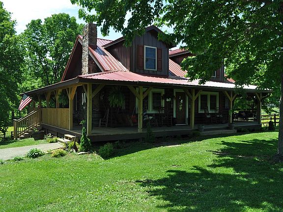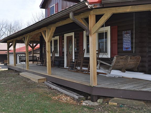 JUST REDUCED!!! Beautifully renovated log home on 7.2 acres fenced into multiple pastures 4-car detached garage and 5 stall barn. Home features beautiful Amish distressed hardwood floors, custom Amish kitchen cabinets and stainless steel appliances. All new windows, HVAC system, and energy efficient tankless water heater. Main level and lower level laundry available. Complete wrap around porch (back is completely screened in for all year enjoyment). New roof on home and garage in 2016 and much more. Schedule your showing today and bring your horse to their new home!