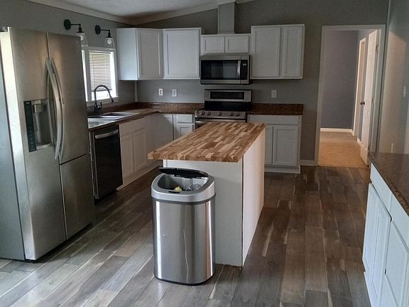Nice ranch style on nearly an acre lot. Beautiful plank flooring. Large kitchen with many cabinets & an island. Master bedroom has a walk-in closet & a large bath with a shower & a soaking tub. Shed at the end of driveway & a shed in the backyard, Covered front porch.