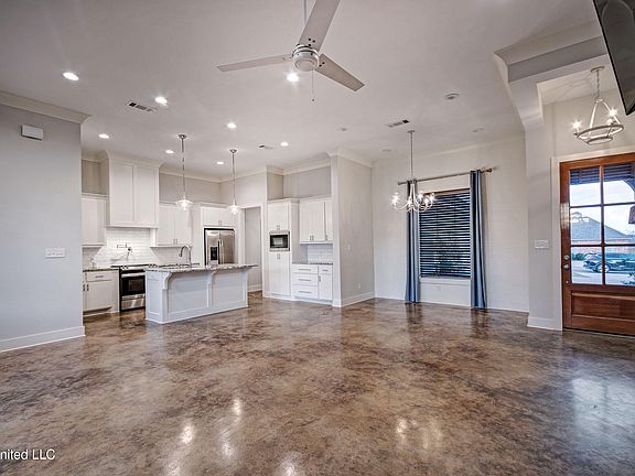 Better than new in Patrick Farms! Situated on a quiet street in one of Rankin County's most sought-after communities, this four bed, three bath home will catch the eye of even the pickiest of buyers! Step into the spacious open concept split plan and you'll find a beautifully appointed living/dining area with gas fireplace, scored concrete floors, and an abundance of natural light. In the kitchen there are granite counters, stainless appliances and plenty of cabinet space. Just beyond that, the master suite with a huge walk-in closet, dual vanities, and a separate shower and bath. On the opposite side of the home, two secondary bedrooms with shared bath (and no carpet!) The fourth bedroom upstairs would make for a great bonus or guest bedroom with its own full bath! Outside, the driveway has been expanded to allow for more parking. There is a 72 hr. First Right of Refusal on this property.