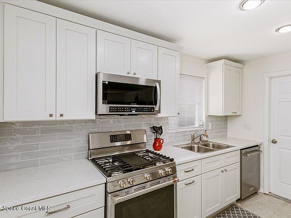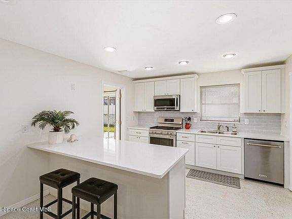 Beautiful Merritt Island 4 bedroom 2 bath 2 car garage block home centrally located. New Roof, Gorgeous new kitchen with Custom Cabinetry, Stainless Steel Appliances and quartz countertops, that opens to a family area (now used as a large eat in kitchen area. Well designed floor plan ... Light and airy featuring a open large kitchen and formal dining area that's great for entertaining and can be closed off for entertaining. Large Primary Bedroom with upgraded custom tile bathroom. Secondary Bathroom has jetted tub. Impressive mature trees in front yard with manicured lawn. Close to shopping, restaurants and schools. Upgraded Electrical Panel Box