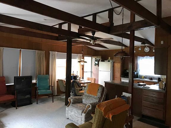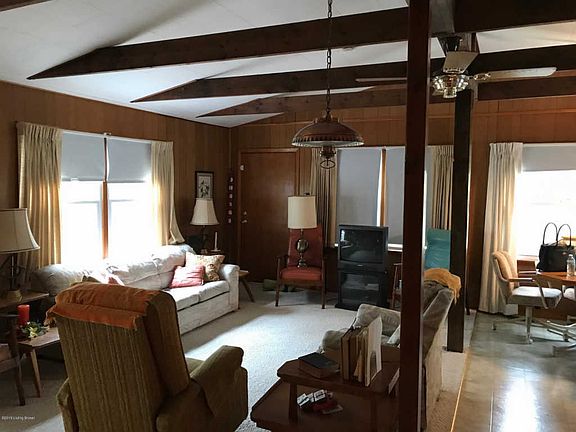 Enjoy this Nolin Lake Front Home on Conoloway Circle. Drive a Golf cart down to the dock or just walk down & Explore Beautiful Nolin Lake. This Contemporary Cottage is very Open/Great room.. Kitchen, Dining area with Living Room, 2 Bedrooms , one with Picture Window. Balcony Deck for Cooking out & Enjoying the View. Spiral staircase leads down to partially finished walk -out basement area with 2nd Full Bath, Laundry & Storage. Efficiency Heat Pump 2012, Metal Roof 2005 . Low Maintenance Exterior. Conoloway Ramp Fee Inc $25.00 a year. The Dock slip transfers with Corp of Engineers Approval. .& 4 owners share in cost of maintenance & permits. First Showings available 4-26-19 Open Sunday 4-28-1 This property goes to the Red Line. Cannot build anything below the yellow line. New owner must create & maintain path . Current owner is scheduled to mow to the Red line. New buyer needs to obtain $10. permit fee for mowing a path below the red line which is a 5 year permit