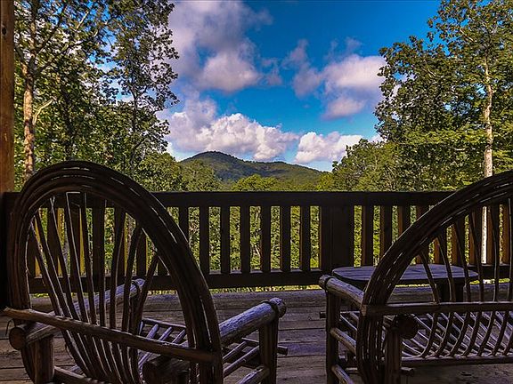 MOUNTAIN RUSTIC ESTATE HOME AT ITS FINEST....this timber frame style architecture ADJOINS THE NATIONAL FOREST and offers 4 bedrooms and open floor plan w/cathedral ceilings, gourmet kitchen open to large greatroom w/stacked stone fireplace, wall of windows showcasing the year-around long-range mountain view, outdoor fireplace for additional entertaining, master-on-main level w/fireplace, stone and tiled bathrooms, finished terrace level w/wet bar and stacked stone fireplace, detached 2-car garage and located in The Heights, a premier gated community in the heart of Cashes Valley with all paved roads, underground utilities, community pavillion overlooking the community pond.