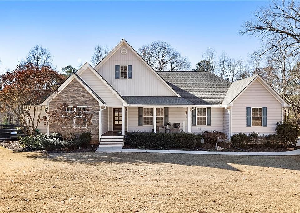 Nestled among the rolling hills, this ranch home offers a perfect blend of privacy and modern living on a sprawling 3-acre lot. From the moment you arrive, the welcoming front porch invites you into a thoughtfully designed open floor plan, featuring gleaming hardwood floors throughout the main living spaces. The spacious eat-in kitchen is ideal for entertaining, boasting an oversized island, abundant cabinetry, and plenty of space for hosting family and friends. Step just beyond the kitchen to unwind on the screened-in porch or wraparound deck, both overlooking your land and the luxurious in-ground saltwater pool. The main-level owner's suite is a retreat of its own, offering private access to the screened porch and a spa-inspired bathroom with dual vanities, a soaking tub, glass shower, and a walk-in closet. Two additional bedrooms and a beautifully updated shared bathroom complete the main floor, providing comfort and convenience for family or guests. The fully finished terrace level nearly doubles your living space and is designed for entertaining! It includes expansive game areas, a home theater, a full bathroom, a cozy living room, a craft room with extra storage, and an office or potential bedroom. Step outside to the pool patio, where the fun continues with a cabana, firepit, and plenty of room to gather and enjoy the outdoors. Additional features include a two-car garage and ample additional parking. Bring your goats and chickens; this stunning property offers the perfect opportunity to establish your own mini-farm. The possibilities are endless! All of this is located just minutes from Alpharetta and Milton's shopping and dining while benefiting from Cherokee County's lower taxes. Don't miss the chance to call this stunning property home - your private retreat awaits!